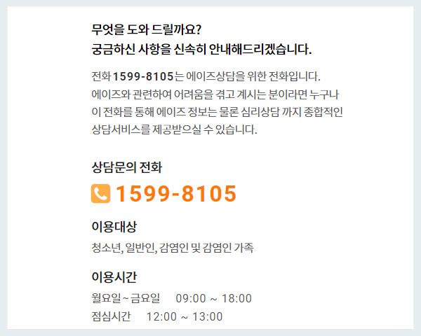 본 센터를 통하여 에이즈에 대한 궁금증 해소는 물론 에이즈로 고통 받는 모든 분들이 문제에서
